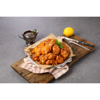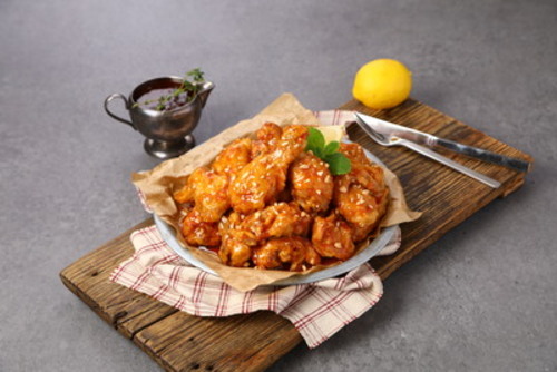 매콤달콤한 소스로 맛을 낸 한국에서 가장 인기 있는 치킨입니다.