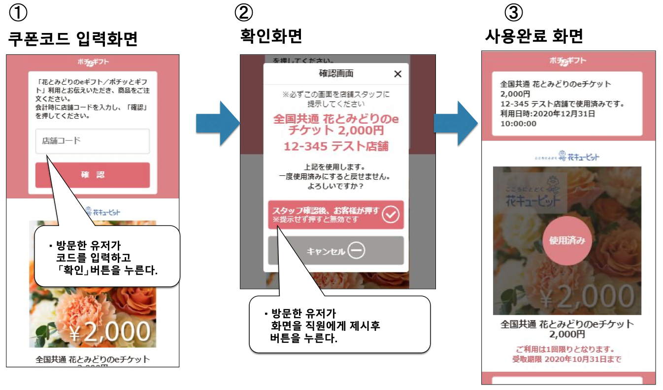 1. 방문하시면 (꽃다발 어레인지 티켓) 교환 화면을 제시하신 후