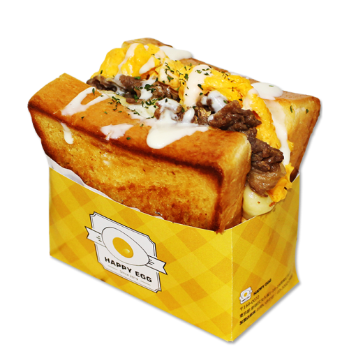 두께 4센티미터의 식빵에 스크램블 에그와 체다치즈, 그리고 각각의 건더기가 듬뿍 끼여 있습니다.