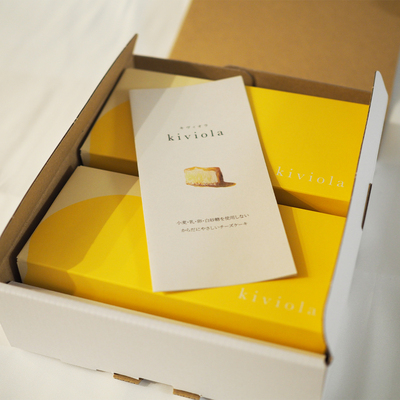 키비올라(kiviola)가 지향하는 것은 몸과 지구에 친근한 과자입니다. 밀가루·유제품·백설탕·첨가물을 일체 사용하지 않고, 몸에 부담 없이 맛있는 과자를 제공합니다. 수많은 시제품을 거쳐 완성된 치즈케이크는 식물성 재료로 만들었다고 생각되지 않을 만큼 진하고 부드럽습니다. 바삭바삭한 쌀가루 바닥과의 조화도 뛰어납니다. 과자에 사용하는 재료는 안전한 방법으로 생산된 것만 엄선합니다. 하나하나 정성껏 손으로 직접 만듭니다. 포장은 환경을 고려한 소재로 과잉 포장을 피하고 심플하게 합니다. 냉동 판매로 식품 손실을 줄여 지구에 대한 배려도 실천하고 있습니다. 이 과자가 건강을 바라는 분들에게 '작은 행복'이 되길 바랍니다.