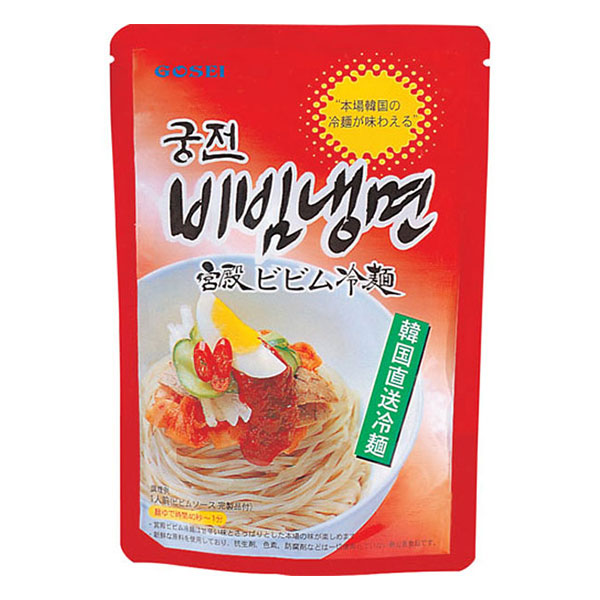 '궁전비빔냉면 세트 220g(1인분)'은 매운맛과 신맛이 조화롭게 어우러진 한국식 냉면입니다.